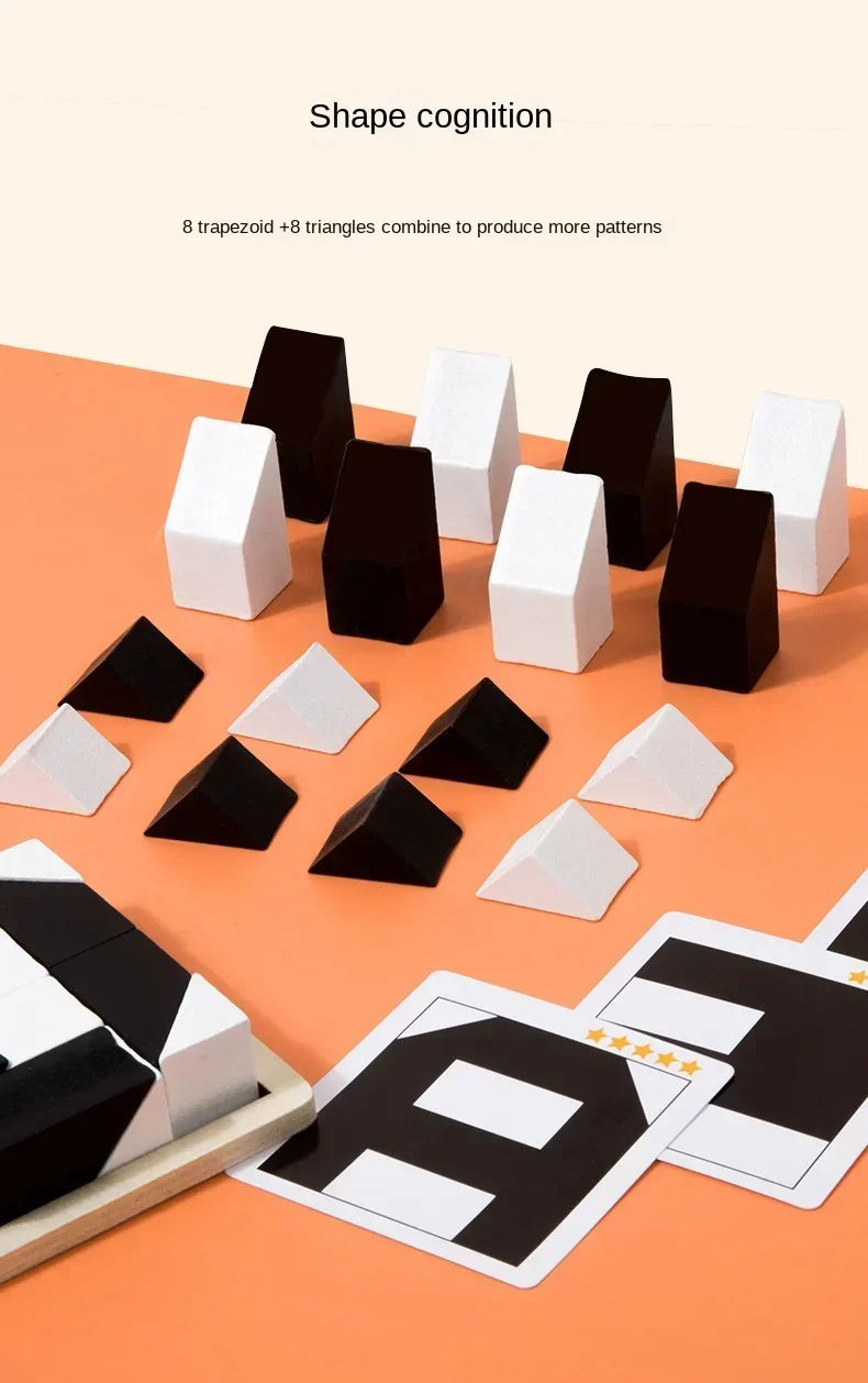 3. Shape Recognition: This Wooden Puzzle set allows you to combine many patterns with 8 trapezoids and 8 triangles, enhancing the kids' shape recognition and imagination.